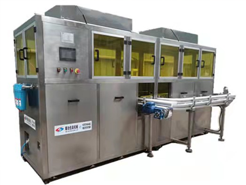 DCQ250/1000型夾式洗瓶機主要用于瓶型規格較多的生產廠家,其操作相當便利,瓶子正立進入氣洗機,便于人工或者自動上瓶;瓶子進入機器后自動翻轉180度,瓶口朝下,便于徹底清洗及收集污染物;清洗后,瓶子再翻轉180度正立輸送出清洗機,有利于塑料瓶收集或者銜接灌裝線?!?/p>